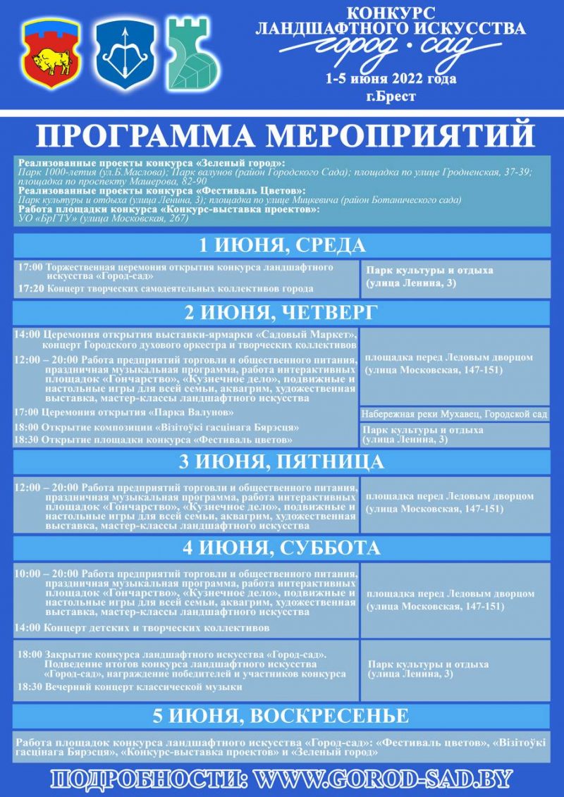 Власти Бреста опубликовали афишу мероприятий конкурса «Город-сад»