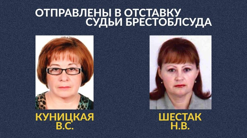 Правозащитники обратили внимание, что двое судей Брестского областного суда, Валентина Куницкая и Нина Шестак, отправлены в отставку указом Лукашенко. Эти женщины неоднократно выносили политически мотивированные приговоры.