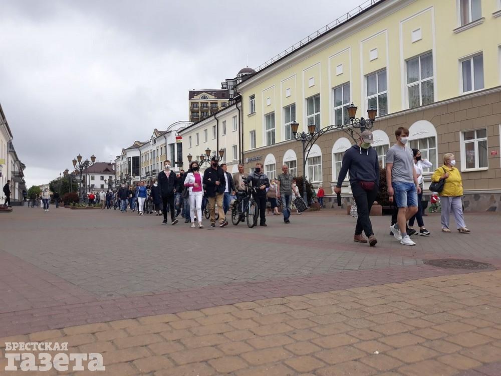После акции протеста собравшиеся пошли по центральным улицам Бреста до кинотеатра «Беларусь».