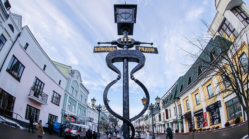 В Бресте на пересечении улиц Советской и Дзержинского появился новый арт-объект — стилизованный фонарь экстренных служб. Его торжественно открыли в День спасателя.