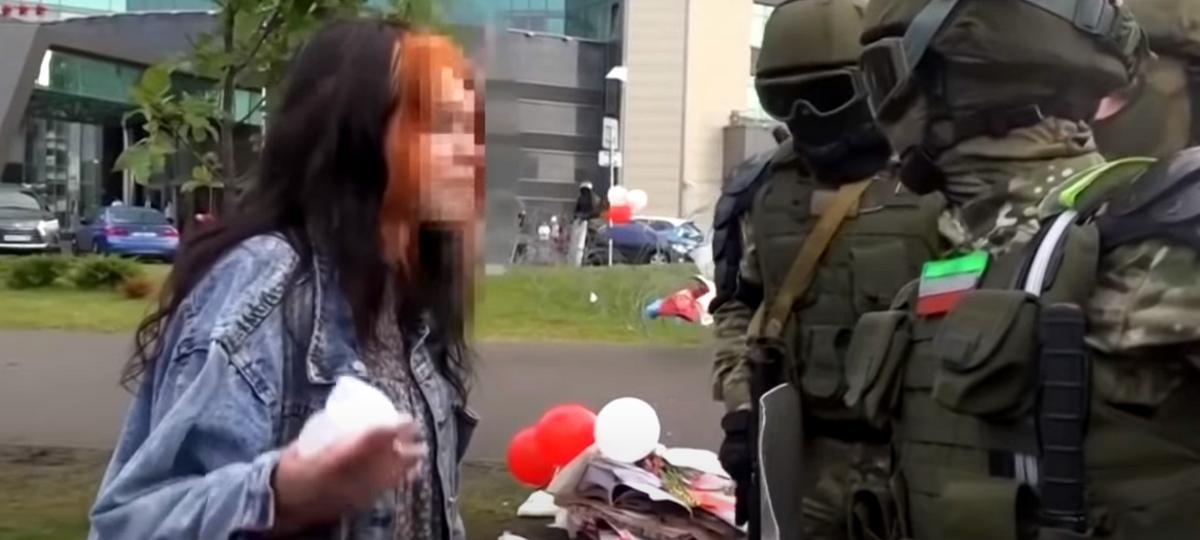 «На этой видеозаписи видно, как молодая особа пишет баллончиком с краской и заградительных счетах автомобилей силовиков. Затем девушка станцевала на фоне своего творчества, а ее спутник снял все это на телефон. Но и на этом приключения юной демонстрантки не закончились. Далее она вступила в словесную перепалку с правоохранителями», — рассказывали о ней в эфире телеканала «Беларусь 1».
