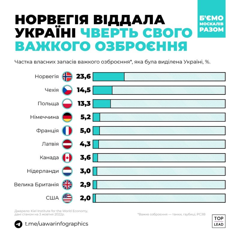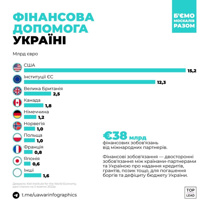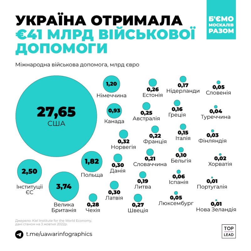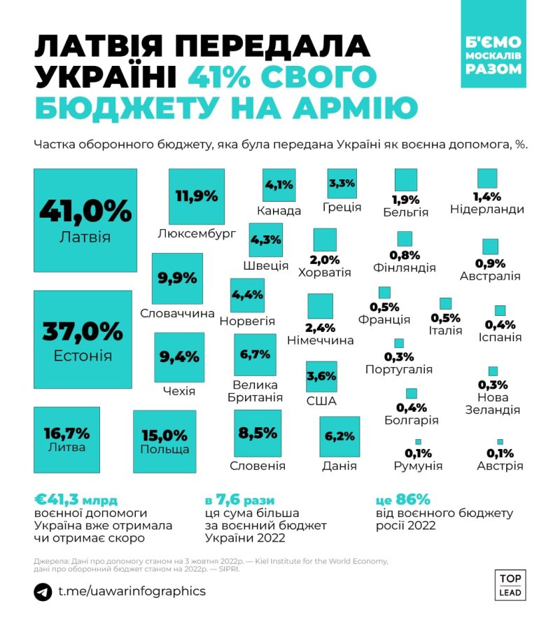 На этой войне Украина не одна — ей помогают страны, которые генерируют половину мирового ВВП. Они передают Украине технику, оружие, форму, деньги, разведданные, консультируют и обучают военных. Война идет уже девятый месяц. Контент-маркетинговое агентство Top Lead подготовило инфографику про помощь Украине во всех сферах.
