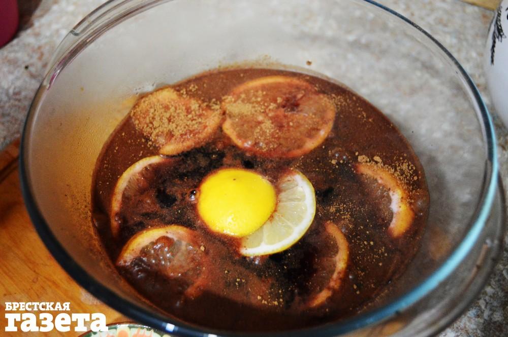Добавьте в горячий сок специи и лимон. Перемешайте, накройте крышкой.