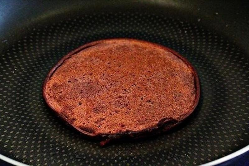 Нагрейте сковороду, смажьте жиром или маслом и вылейте в центр около четверти стакана теста. Когда появятся пузырьки, переверните блинчик.