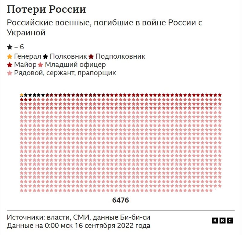 Всего на 16 сентября удалось подтвердить информацию о 6 476 погибших солдатах и офицерах.
