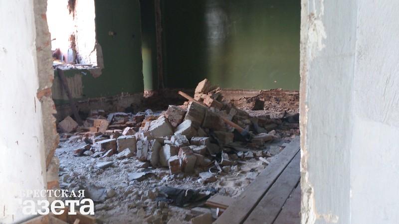 Тогда корреспондент побывала на Советских Пограничников, 34. Там работы шли, что называется, на полную катушку. Сразу бросились в глаза огромные груды битого кирпича. Здание зияло пустыми глазницами оконных проемов. Практически все окна были уже демонтированы, а часть флигелей разрушена. При взгляде на здание создавалось впечатление, что от него остался лишь жалкий остов без каких-либо «внутренностей». Это и есть подготовительный период?