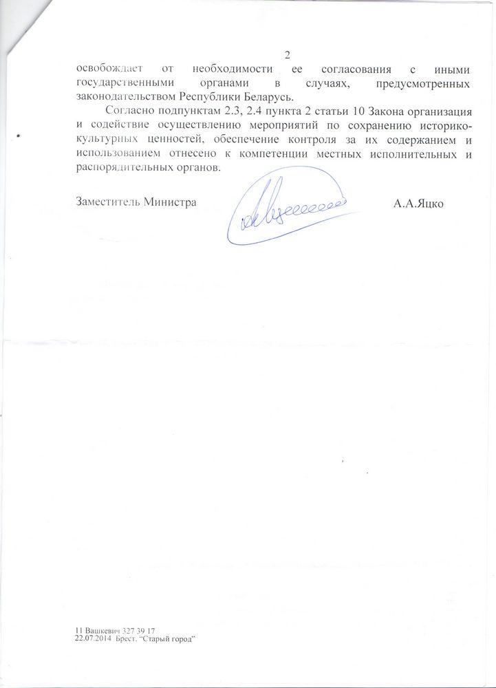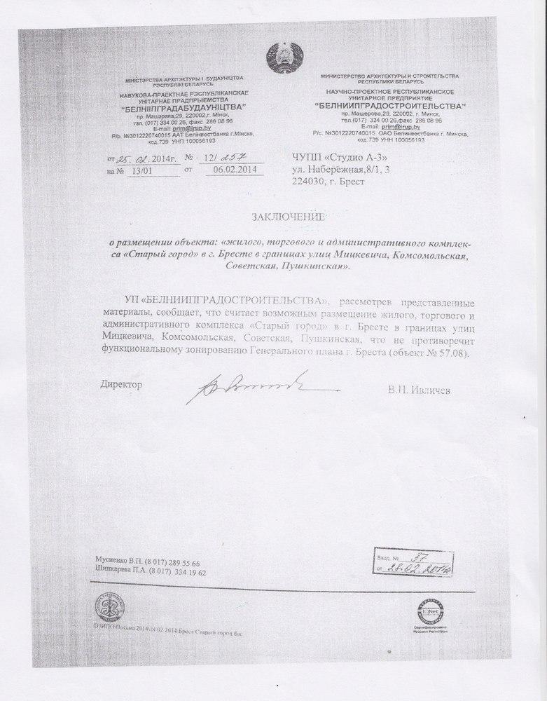 Корреспондентом была предпринята попытка узнать, почему до сих пор нет ответа на коллективное письмо брестчан, выступающих против строительства комплекса «Старый город». Однако начальник отдела по работе с обращениями граждан и юридических лиц горисполкома Ирина Мокат решительно заявила: «Вы являетесь одним из заявителей? Нет? Значит, по закону об обращениях граждан я вам ответ на ваш вопрос дать не могу. Я понимаю, были бы вы заявителем. Тогда по предъявлении паспорта — пожалуйста».