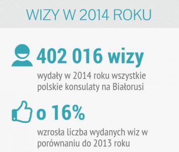 Итак, всего в 2014 году все консульские отделы Польши в Беларуси выдали 402 016 виз. Это на 16% больше, чем в 2013 году. Кроме того, в интересах Польши 14 776 виз выдало Генконсульство Латвии в Витебске.
