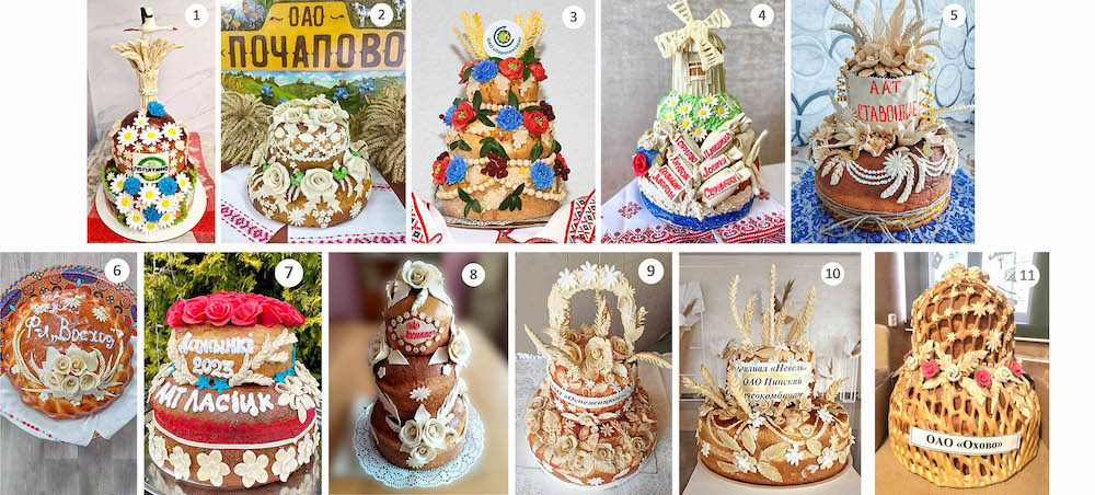 Кстати, о караваях. На Пинщине прошел конкурс на лучший каравай. Одиннадцать сельхозпредприятий района состязались в конкурсе на самый красивый и креативный каравай урожая 2023 года. Посмотрите, какая красота. Что нас особенно в этом порадовало — нет ни одного в красно-зеленых тонах. Куда смотрят идеологи?