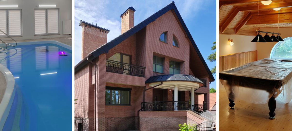 В мансарде находится атмосферная бильярдная и вспомогательные помещения. В доме — несколько санузлов.