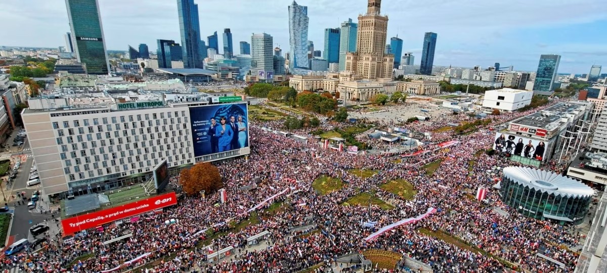 В воскресенье, первого октября, около миллиона человек приняли участие в митинге оппозиции «Марш миллиона сердец» в Варшаве. Через две недели в стране пройдут выборы, которые, по мнению либеральной партии «Гражданская платформа», могут определить будущее место Польши в Европейском Союзе и общее положение с демократическими свободами в стране.