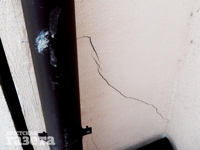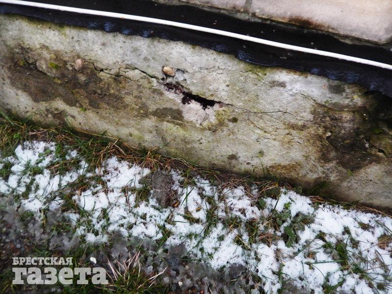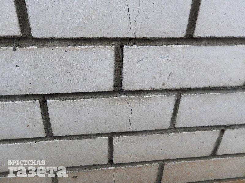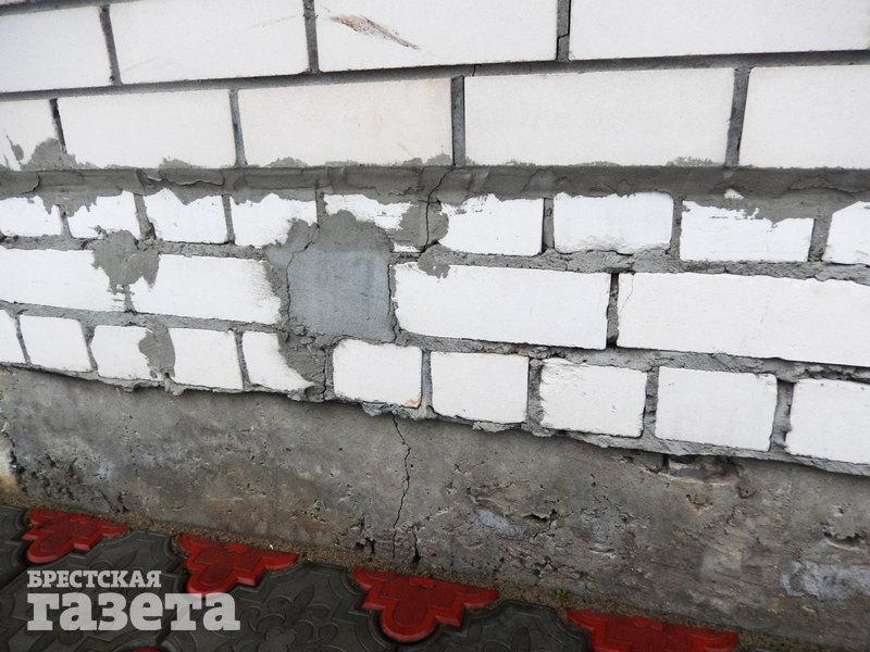 Брестчанин Дмитрий живет в доме №4 по ул. Поплавского. От его жилища до опор будущего путепровода Западного обхода безо всяких преувеличений рукой подать. Он показал трещины на стенах и фундаменте с наружной стороны своего дома и пояснил, что появились они вскоре после того, как стали забивать сваи.