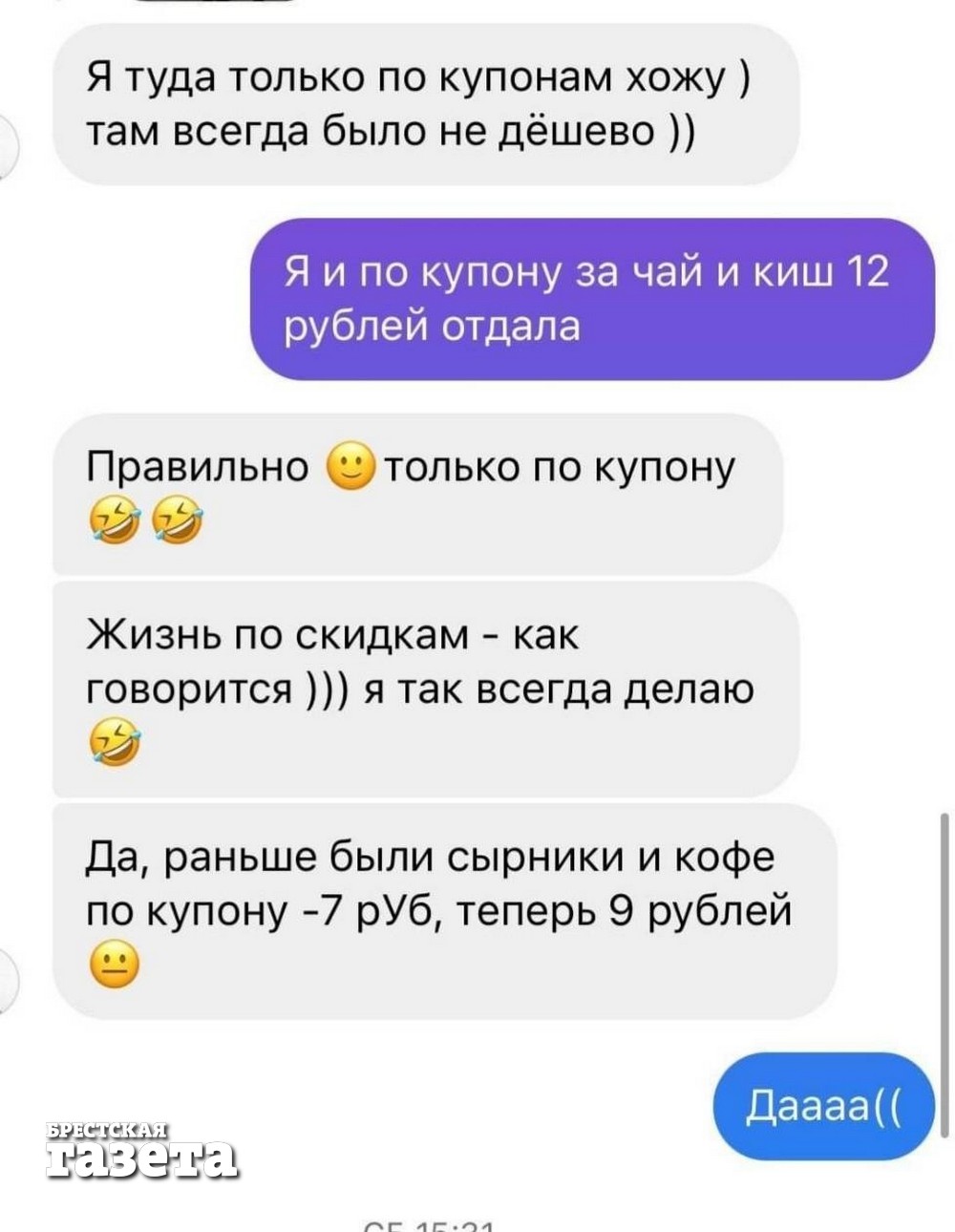 «Подорожали и киши, – подхватывает ее подруга Лена. – Если раньше за кусок киша в среднем я платила около 4,5 рублей, то сейчас это где-то 6,5 рублей».