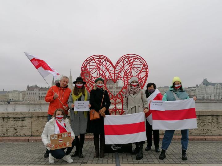 Белорусы в Будапеште также провели сегодня акцию солидарности с Беларусью, сообщает TUT.BY.