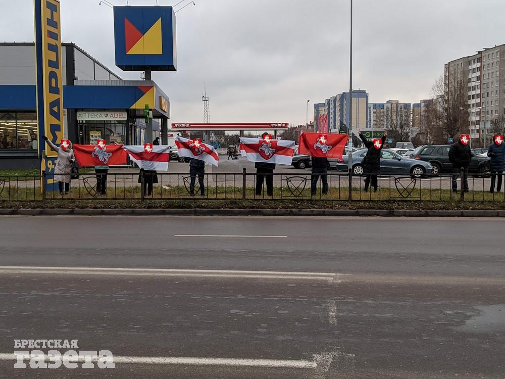 После 14.00 в Бресте на Востоке замечена колонна с флагами.