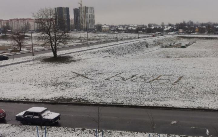 В Бресте ночью выпал первый снег, который пока держится. И креативные сторонники перемен тут же этим воспользовались.