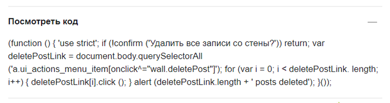 Еще один действенный способ — воспользоваться для удаления специальным скриптом. Работает в тех случаях, когда удалить нужно не выборочно. Необходимо перейти на главную страницу Вконтакте, нажав в меню «Моя Страница». Пролистайте страницу вниз до той записи, начиная с которой хотелось бы все удалить. В любом месте страницы поставьте курсор и нажмите правую клавишу мыши. В появившемся меню нужно выбрать пункт «Просмотреть код» и нажать на него. В разных браузерах вкладка может называться по-другому. К примеру, «Исследовать элемент». Но везде она идет последним пунктом в меню. После этого на экране появится окно с несколькими вкладками. Дальше необходимо перейти во вкладку «Console». Затем нужно скопировать код, который автоматизирует удаление, и вставить его в поле с курсором.