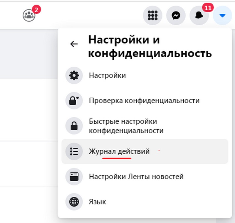 Также в Facebook можно скрыть определенные публикации из ленты. Их потом можно восстановить. Для этого нужно найти у себя на странице зайти в раздел «Настройки и конфиденциальность» (его найти можно в верхнем правом углу). В меню выбрать пункт «Журнал действий», затем «Управление публикациями».