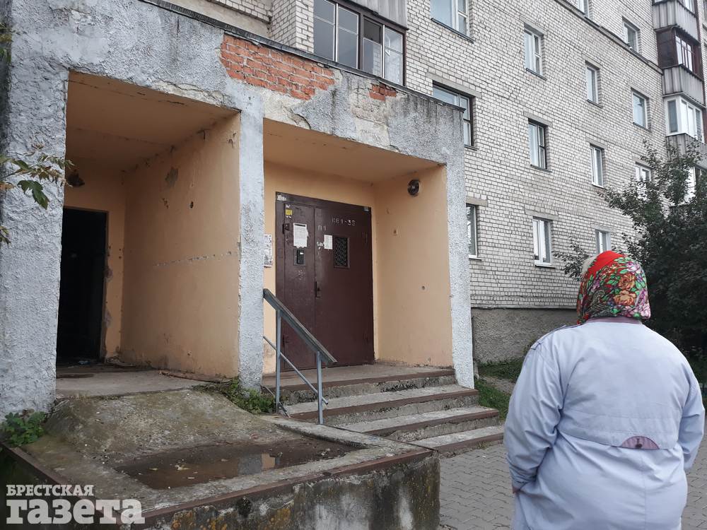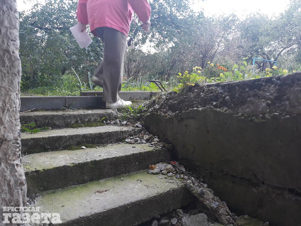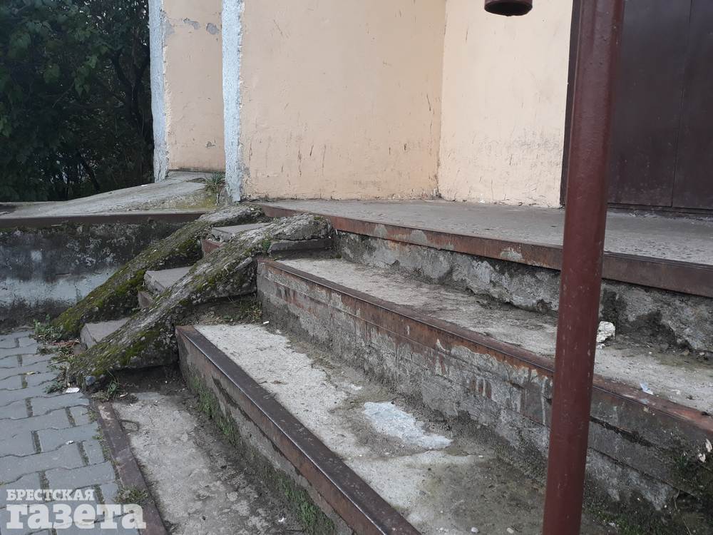 Люди, с которыми говорила корреспондент «БГ», за то, чтобы заварили мусоропровод в доме — контейнер, в который падает мусор, летом очень воняет. Они обращают внимание на вход в подъезд — стена уже облупливается, хотя ремонт, по их словам, был сделан около 5 лет назад. А еще показывают на ступеньки и бордюр в подвал дома, которые сыплются, на мох под домом.