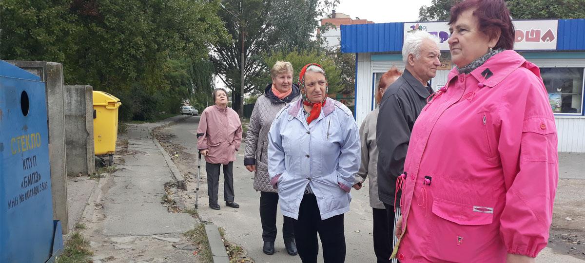 «Мы просили: сделайте нам нормальный тротуар — его нет. Мы все вынуждены выходить на проезжую часть. Но когда дождь, на асфальте стоит лужа от бордюра до бордюра», — жалуются пенсионеры.
