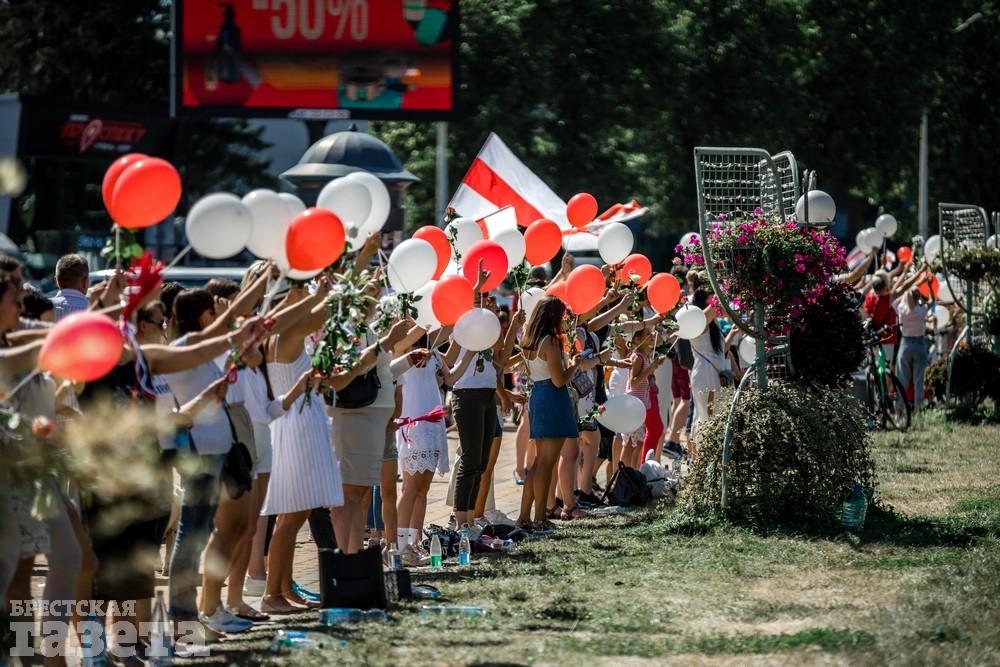 Как и ранее в руках у многих цветы, белые или красные воздушные шары. Проезжающие рядом машины им традиционно сигналили, тем самым выражая свою солидарность.