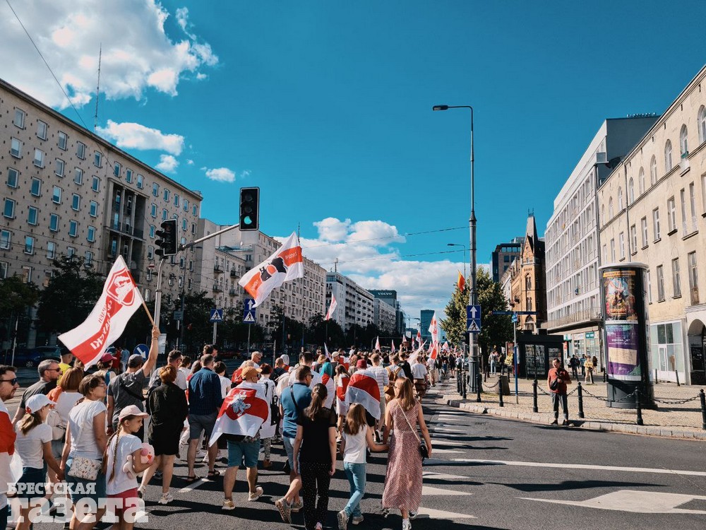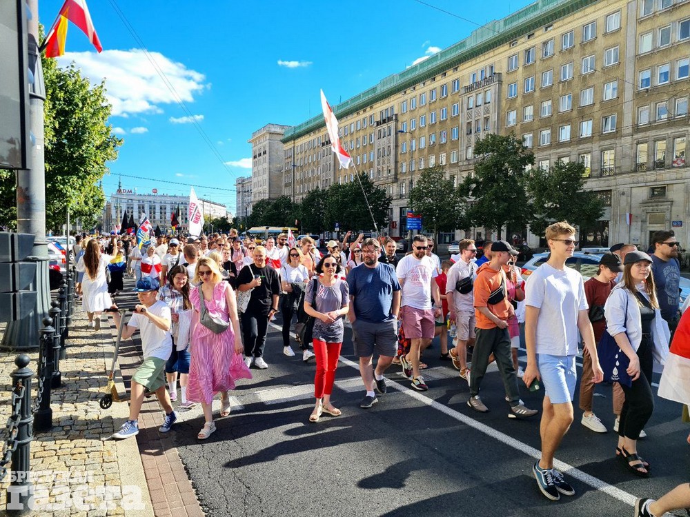 Сегодня в центре Варшавы прошел «Марш годнасці», приуроченный ко второй годовщине протестов после фальсификации президентских выборов в Беларуси 9 августа 2020 года. Беларусы собрались на Площади Конституции и маршем прошлись до Замковой площади.