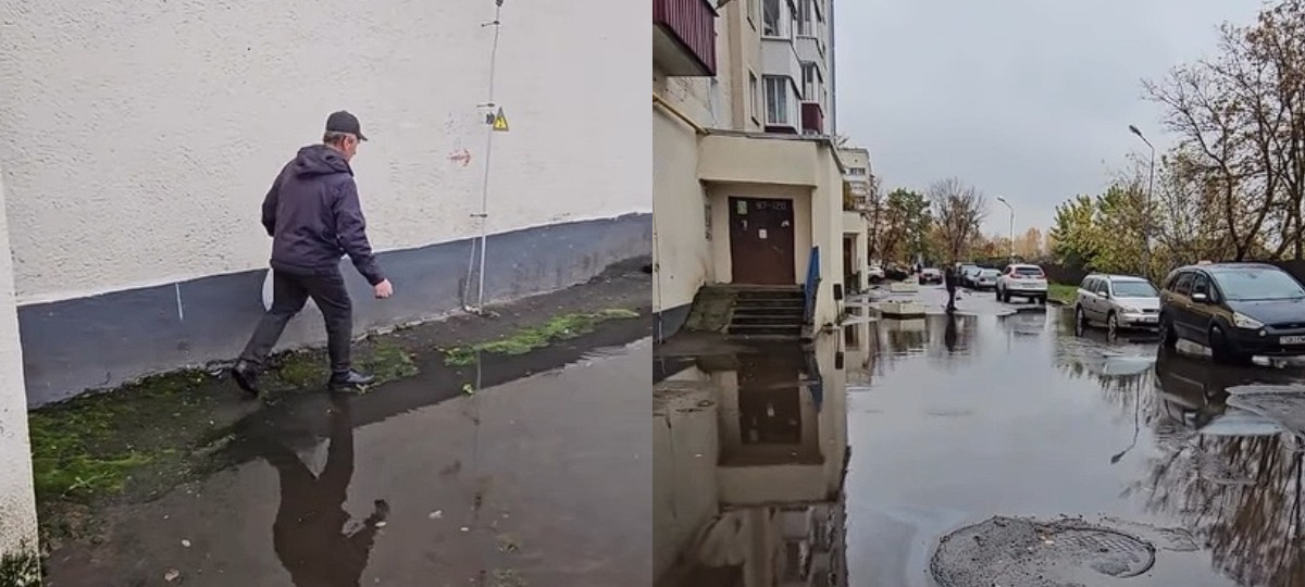 21.10.2025 14:39 Лужы каля жылога дома ў Магілёве. Скрыншоты з відэа. Источник фото