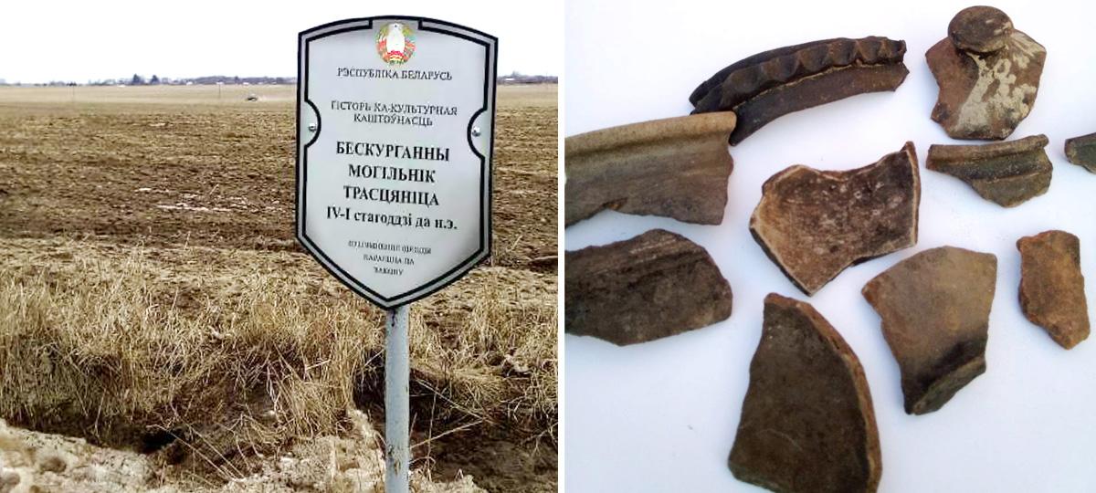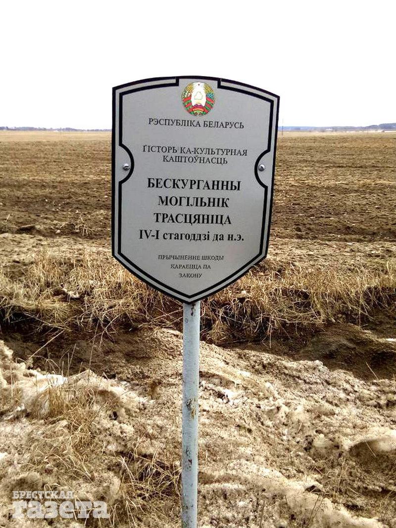 «Плуги, судя по всему, приблизились очень близко, культурный слой поврежден, и все, что возможно, уже нарушили, — считает Чайчиц. — Обычно как минимум в радиусе 5 — 10 метров от такой таблички ничего нельзя делать. Получается, что в начале прошлого века люди, которые занимались земляными работами и обнаружили могильники, вызвали, кого положено. А вот другие сейчас ведут на месте могильников сельхозработы и засыпают их химикатами. По сути, все труды археологов сводятся на нет».