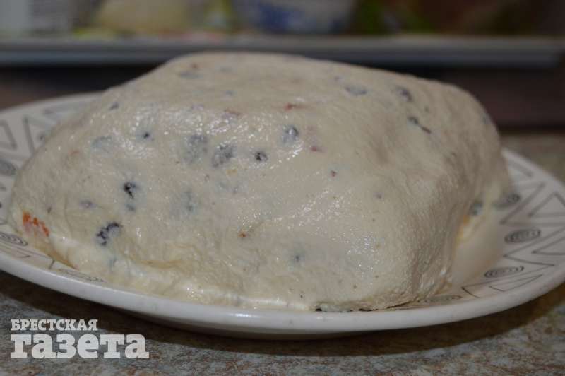 Сверху также прикройте марлей, хорошо примните. Поставьте пасху в прохладное место минимум на 6 часов. Чтобы творог лучше утрамбовался, сверху положите груз.