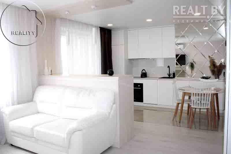 В квартире сделан качественный ремонт из дорогостоящих материалов: окна – ПВХ, полы – ламинат высокого класса, на кухне и в прихожей – керамогранит, потолки – натяжные, стены – обои под покраску, с/у полностью облицован плиткой. Кроме того, установлена подвесная сантехника со скрытой системой слива и бойлер на горячую воду.