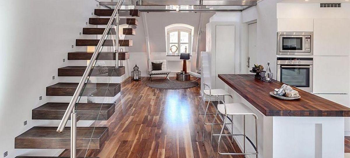 Эта двухуровневая квартира находится на 10-м этаже в кирпичном доме 1997 года постройки.