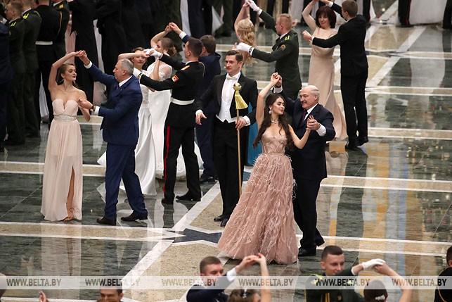 Президент Беларуси Александр Лукашенко сегодня на первом Республиканском новогоднем балу для молодежи во Дворце Независимости танцевал вальс с «Мисс Беларусь — 2018» Марией Василевич, передает БелТА.