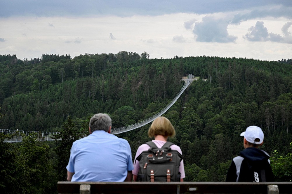 Протяженность моста, который открыли 1 июля, составляет 664 метра — это всего на 57 метров короче моста Sky Bridge в Чехии (его открыли в мае 2022 года), но наивысшая точка немецкой конструкции располагается на несколько метров выше. Владельцы уверяют, что это самый длинный свободно висящий канатный мост в мире.