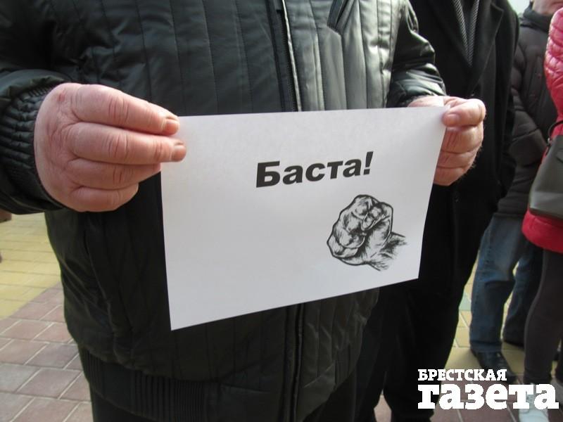 Выступает Владимир Вуек. Он считает, что акция должна быть переформатирована, и приглашает всех участников организованно идти к горисполкому. Его предложение поддержали, и собравшиеся (около 200 человек) направились туда. В руках плакаты: «Нет декрету №3» и «Баста!»