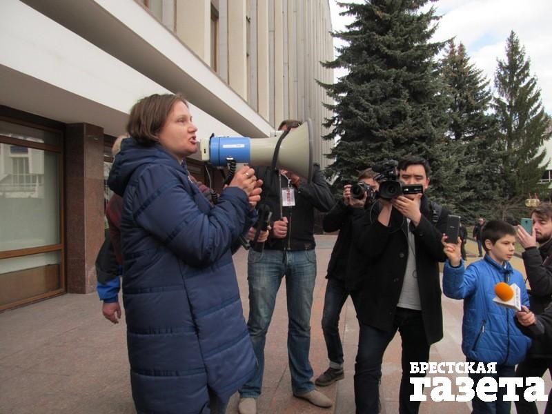 Пришли на площадь лидер областной организации ОГП Владимир Вуек и координатор предыдущей акции протеста березовский активист Александр Кабанов, которого на уходящей неделе не раз вызывали в милицию.
