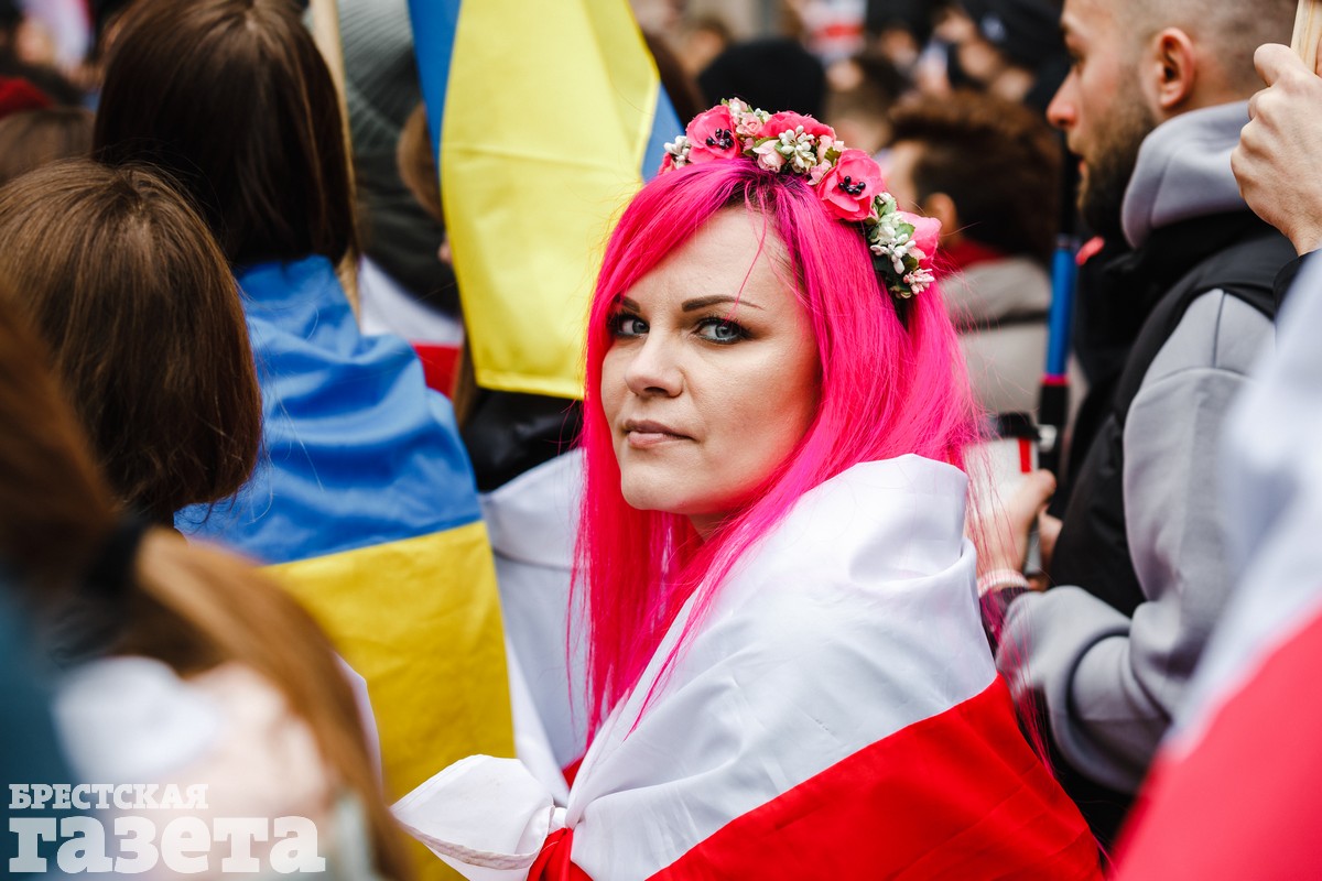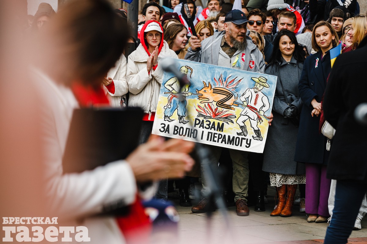 Акция проходила под лозунгом «Белорусы солидарны с Украиной». «Мы громко заявляем, что белорусы против войны в Украине. Еще раз заявим: Лукашенко и Путин — диктаторы, которых не поддерживает белорусский народ!»,- говорили накануне организаторы.