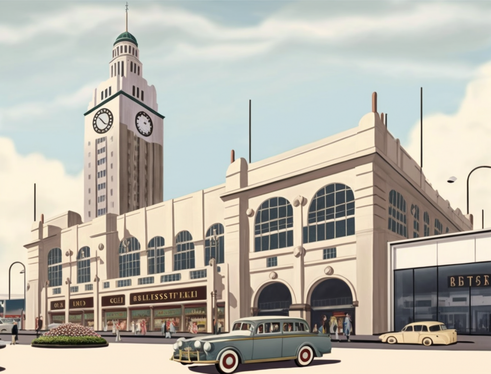 Железнодорожный вокзал от Midjourney выглядит не так современно, как хотелось бы.