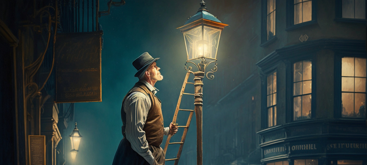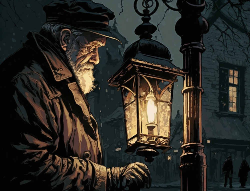 На этой картинке Midjourney сделала акцент на фонаре. А вот фонарщик оказался пожилым мужчиной.