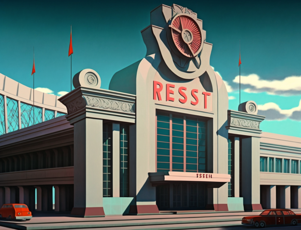 Кинотеатр «Беларусь» на Советской от Midjourney чем-то похож на реальный кинотеатр, разве что здание получилось более квадратным.