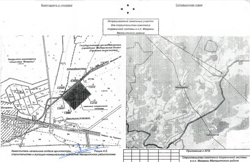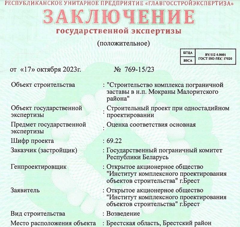 17 октября 2023 года РУП «Главгосстройэкспертиза» опубликовала положительное заключение по строительству погранзаставы. Документ содержит 107 страниц. Там подробно расписано, какой будет погранзастава возле Мокран.