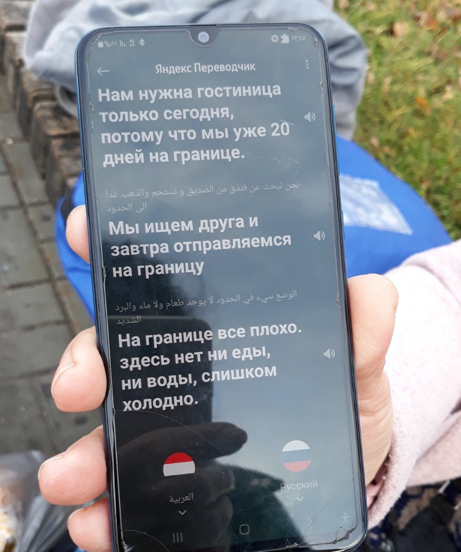 Пока мы общались с Худы, ее муж разговаривал с кем-то по телефону насчет ночлега. Как выяснилось, «гостиница», которую они искали, это, на самом деле, съемная квартира на одну ночь. Чтобы принять душ и поспать, как пояснила женщина. Больше в городе они не могут находиться без регистрации, истекают 20 суток их пребывания в Беларуси.