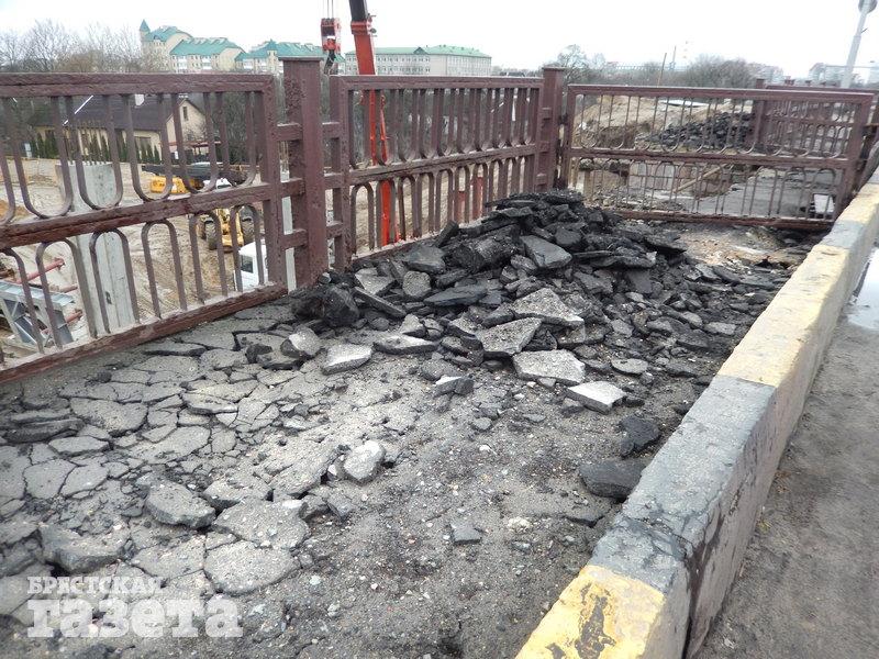Фотофакт. В Бресте начали демонтировать пешеходную часть Кобринского моста