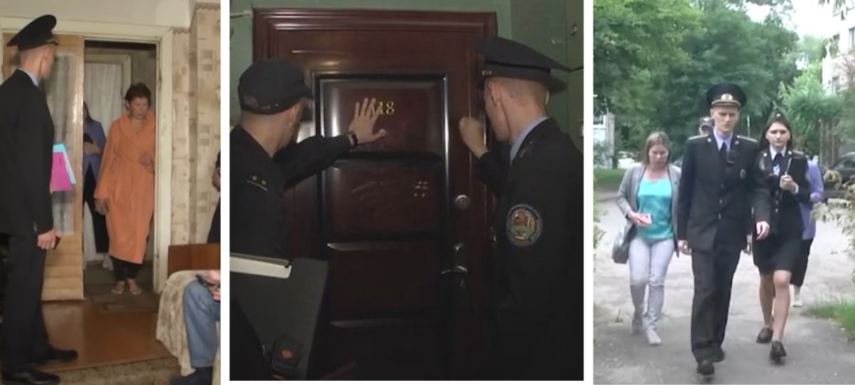 В сюжете местного провластного телеканала показали, как судебные исполнители ходят по квартирам должников за коммунальные услуги, настойчиво стучат в двери и в жесткой манере разговаривают с людьми.