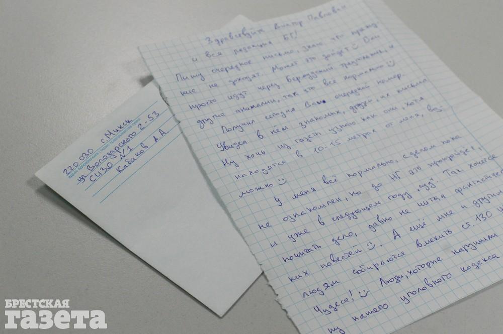 В четверг, 26 ноября, редакция «БГ» получила письмо от блогера Александра Кабанова, который сейчас находится в СИЗО на Володарского в Минске. Письмо датировано 23-м числом. То есть в отличие от большинства писем из «таких мест» это дошло очень быстро.