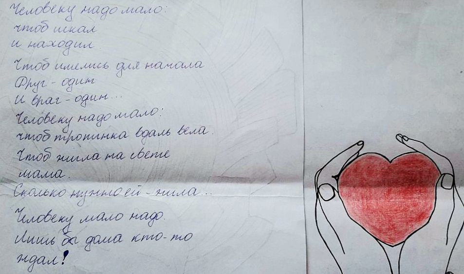А еще она тогда показала письмо от сына, с отрывком из стихотворения Роберта Рождественского и рисунком.