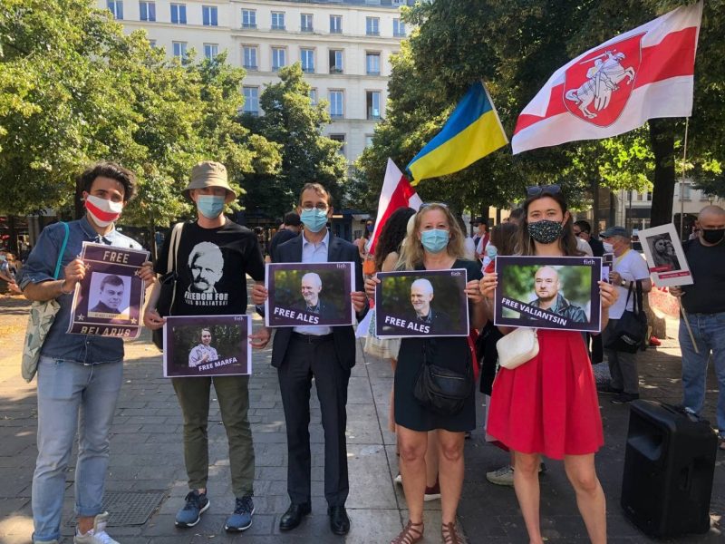 Международная Федерация за права человека (FIDH) провела в Париже акцию солидарности с задержанными правозащитниками «Весны» и всеми политзаключенными Беларуси.