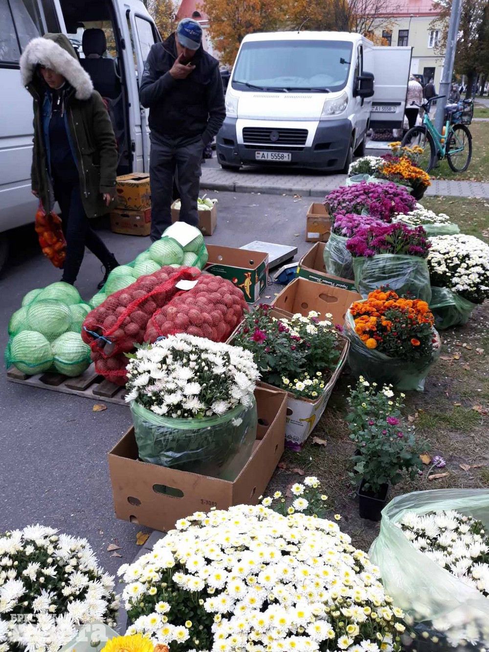 Преимущественно женщин заинтересовало разнообразие кустов хризантемы, которые продавец из Столина оценила недорого: от 5 руб. за штуку. Некоторые завидовали, восхищались и просили: «Приезжайте еще. Получим зарплату – купим».