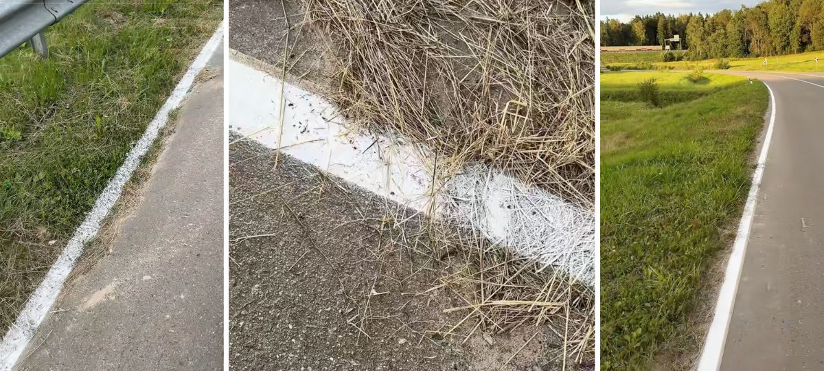 «Обновили разметку — смотрите, покрасили по траве», — говорит женщина на видео, показывая «свежие» линии вдоль дороги.