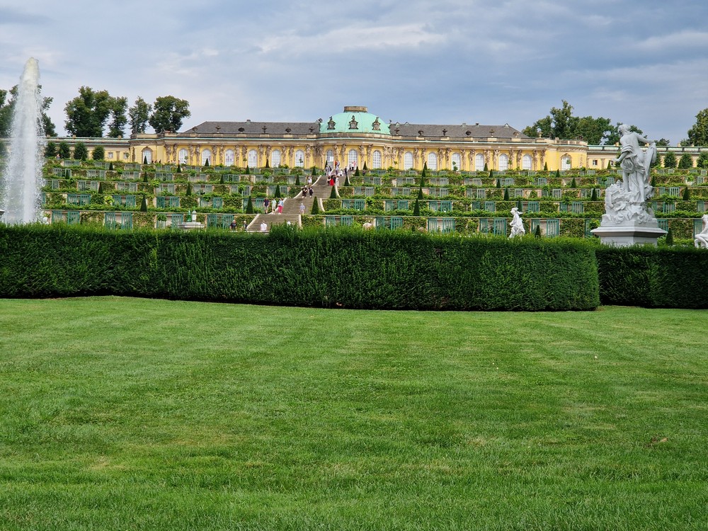Дворец Сан-Суси служил Фридриху Великому (Friedrich II) убежищем от повседневной суеты и придворных. «Sans souci» в переводе с французского буквально и означает «без забот». Прусский король распорядился начать строительство этой летней резиденции в 1745 году. Он здесь не только жил, но и умер.