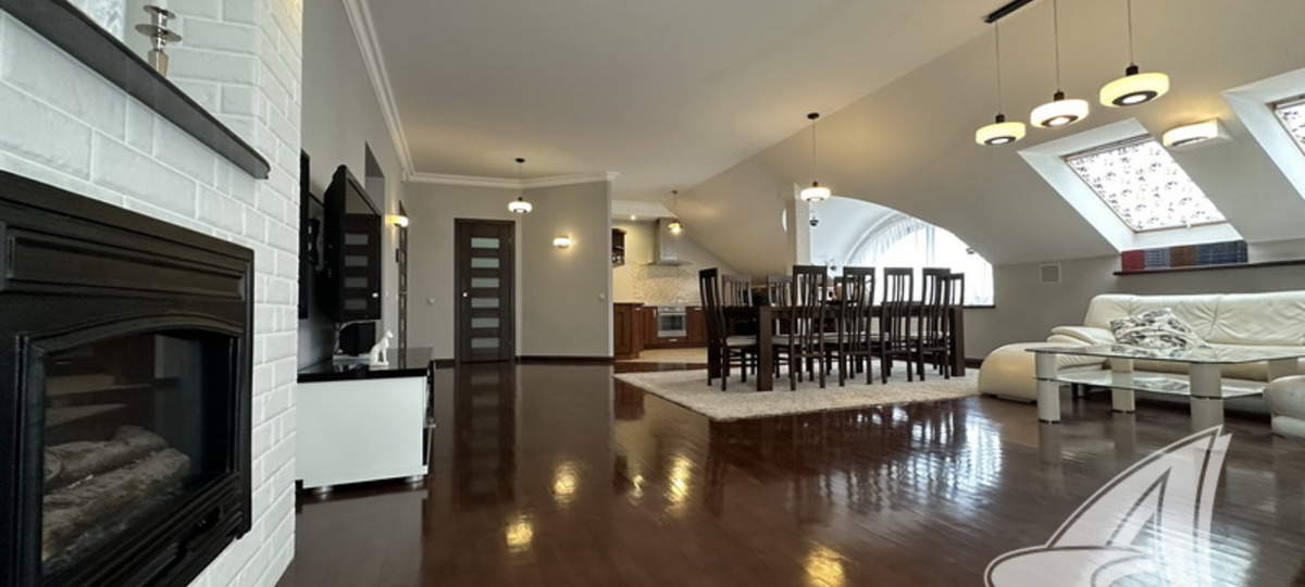 Квартира-мансарда расположена на последнем этаже четырехэтажного кирпичного дома 2008 года постройки. Дом находится в центре города и входит в историко-культурное наследие Бреста. Первое, что обращает на себя внимание, — окна. Они необычных форм из-за мансардного этажа и придают помещению свой неповторимый шарм.